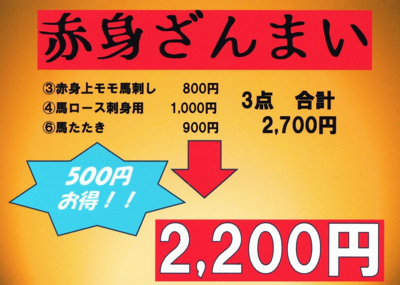 ③赤身上、④馬ロース、⑥馬たたき